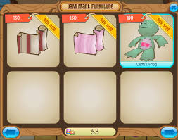 This is the Den shop in Beta, as you can clearly see wallpaper looked differant in the shops and instead of just a sheet of it, it is a rolled up peice of wallpaper! I wish i had a Cami frog.....only 100 gems, things in Beta didn't cost that much!
